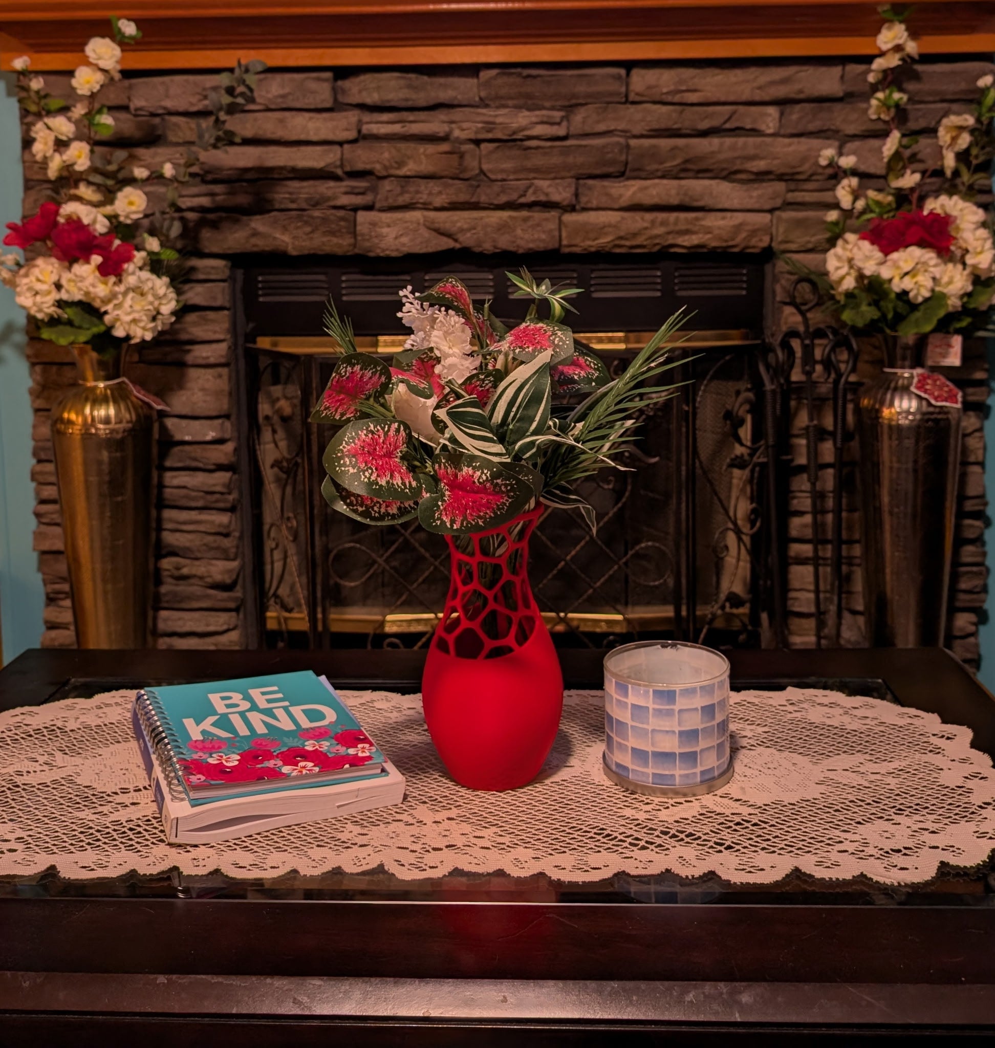 Crimson Voronoi: Modern Geometric Vase