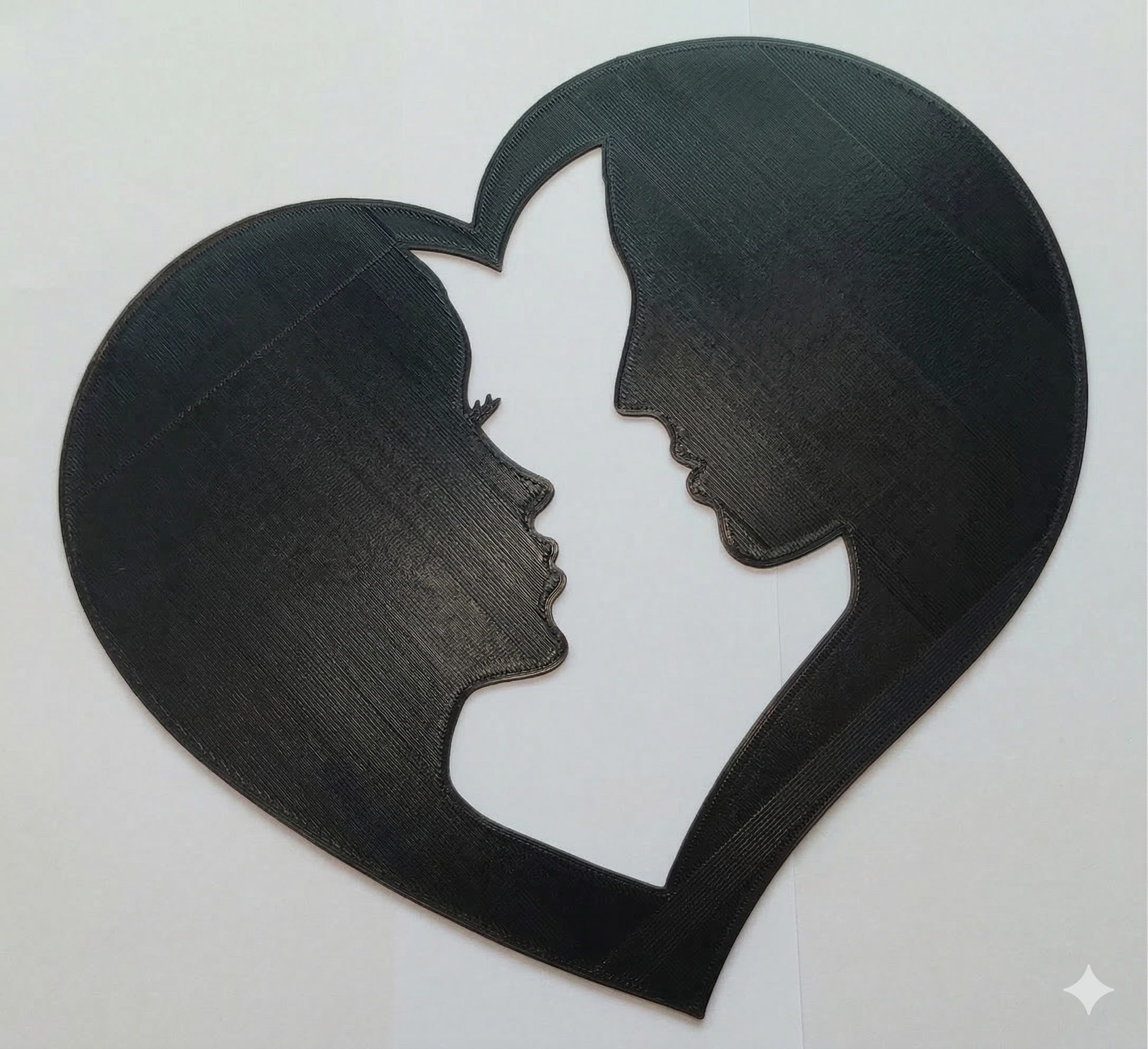 Capture the beauty of connection with this elegant 3D-printed couple's silhouette heart. Crafted with care at Azzo's 3D Atelier, this striking piece features the delicate profiles of a couple facing one another, beautifully framed within a classic heart. It's a meaningful and modern addition to any space.