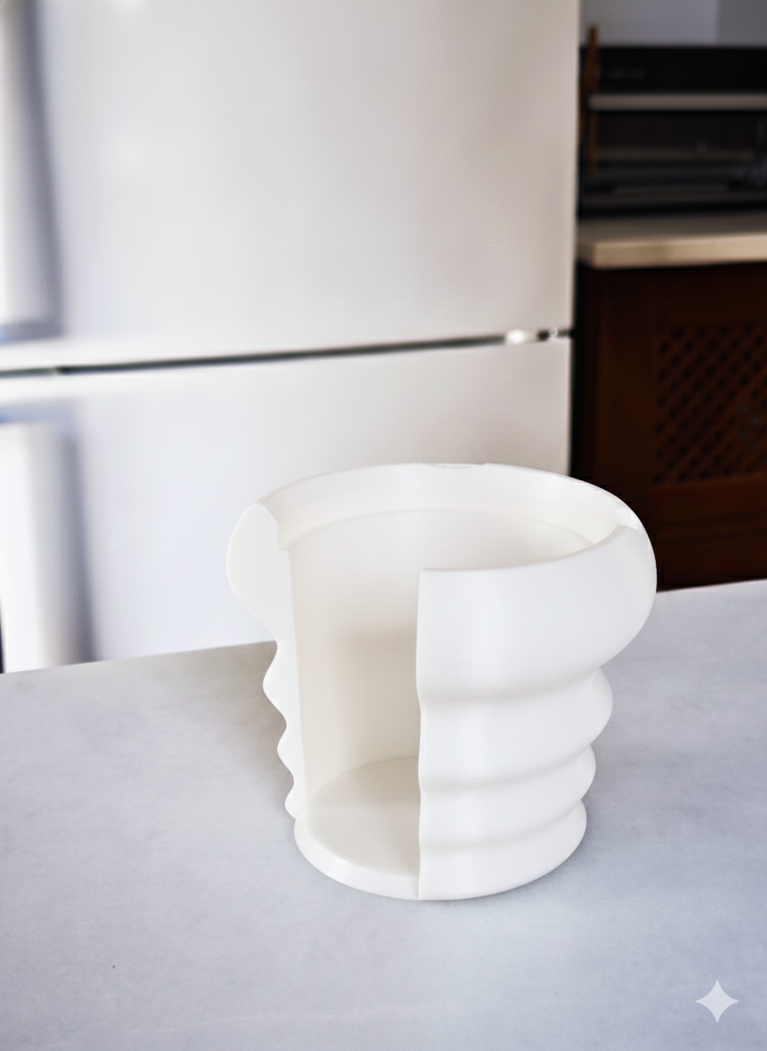 Precision-molded in durable PLA filament to fit standard pint dimensions (103 mm height, 48.5 mm top diameter, 40 mm base diameter), this portable accessory transforms your ice cream experience whether at home or outdoors.