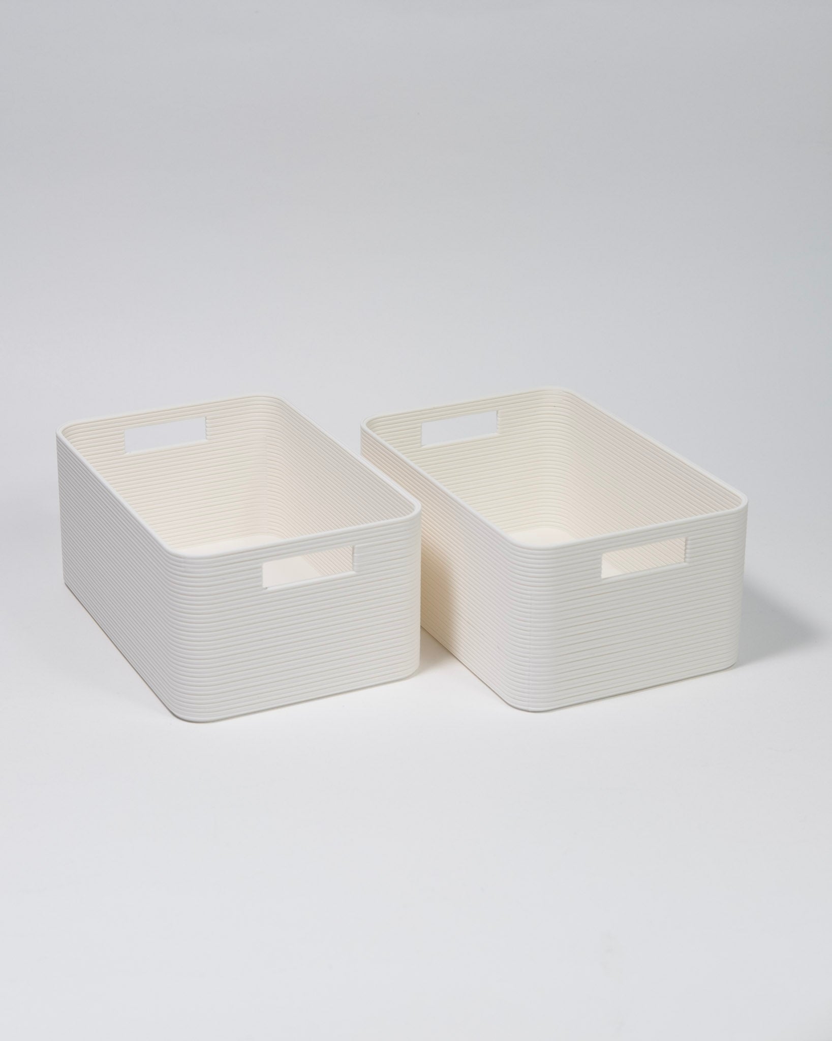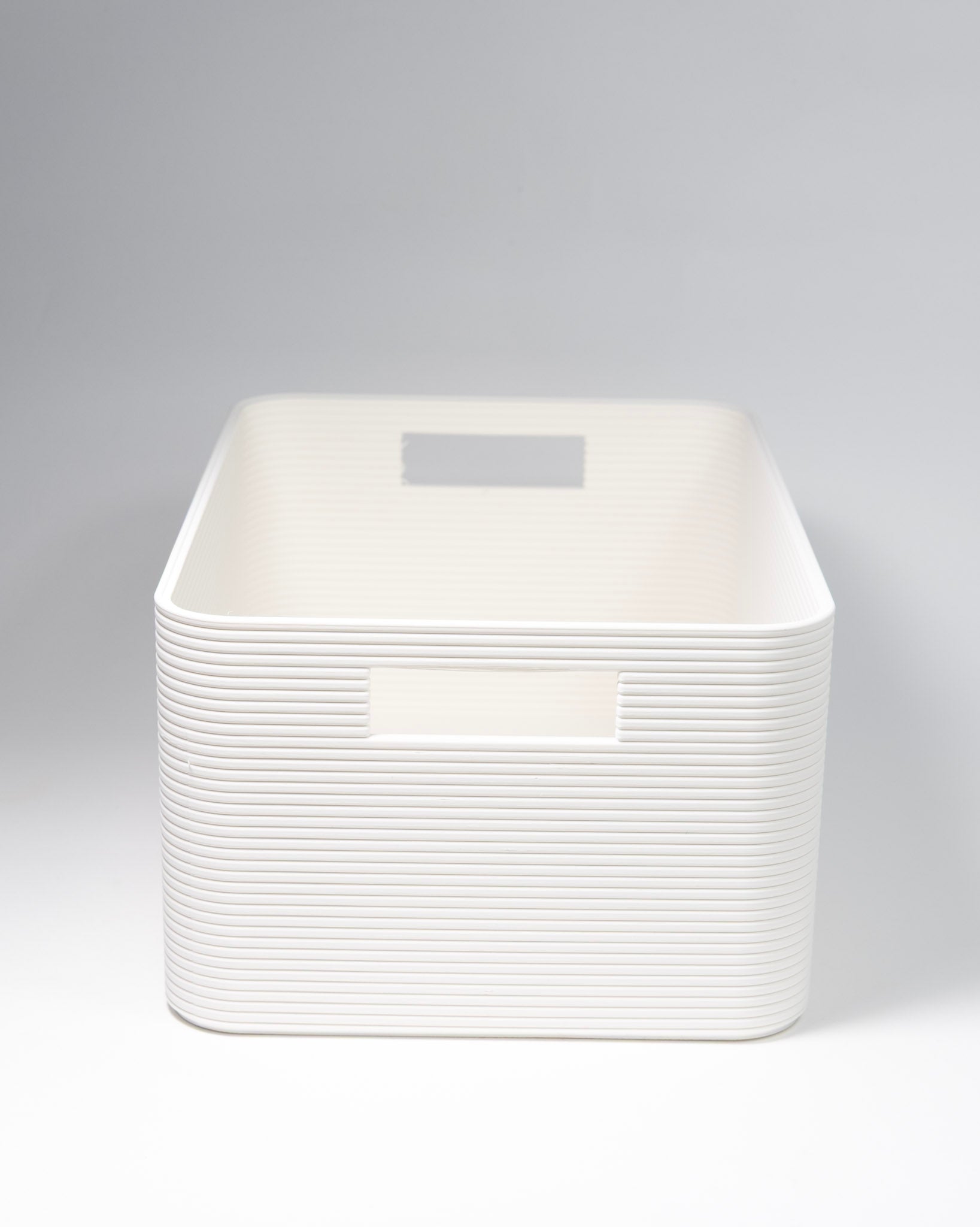 A storage solution for tidy homes & offices. Its fine, vertical lines create a modern, minimalist look and a pleasant tactile feel. The modular design allows the boxes to be stacked, making them ideal for shelves, desks, or drawers with convenient handle cutouts for easy access.
