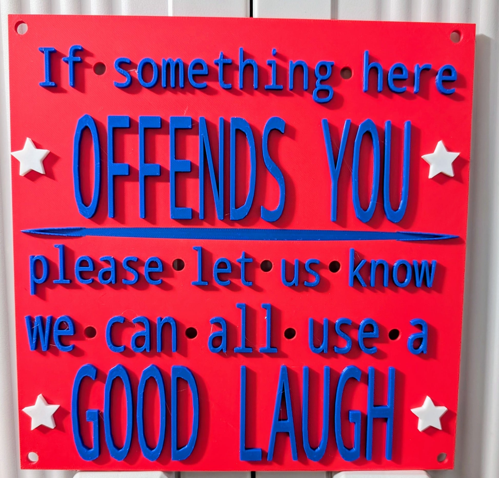 This sign is the ultimate filter for your home or business. It lets visitors know that if they find something offensive, you’re happy to hear about it—mostly because you need a good laugh.